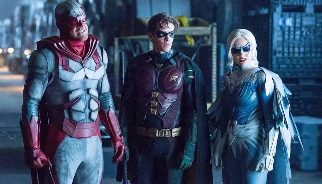 O roteiro acerta ao formar duplas para sub-arcos durante o enredo, como por exemplo Jason Todd (Curran Walters) e a filha do Exterminador, o Superboy e Mutano (Ryan Potter), e Kory (Anna Diop) e Donna Troy (Conor Leslie). É interessante também acompanhar os embates filosóficos entre Grayson e Bruce Wayne (Iain Glen).